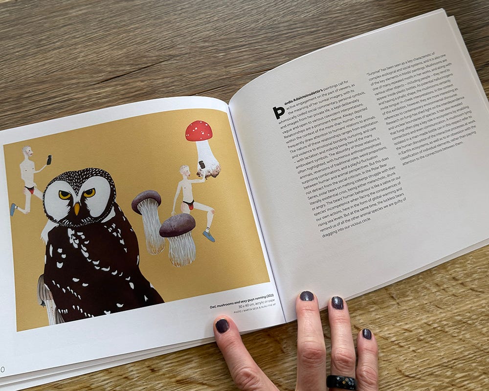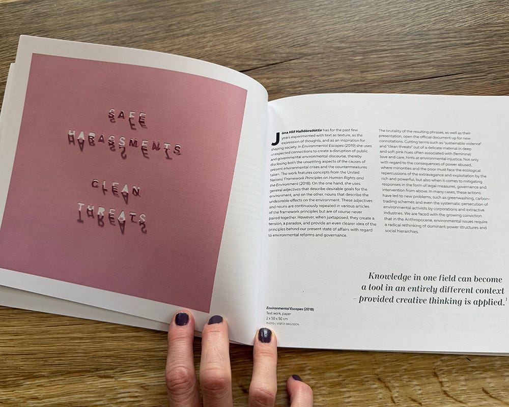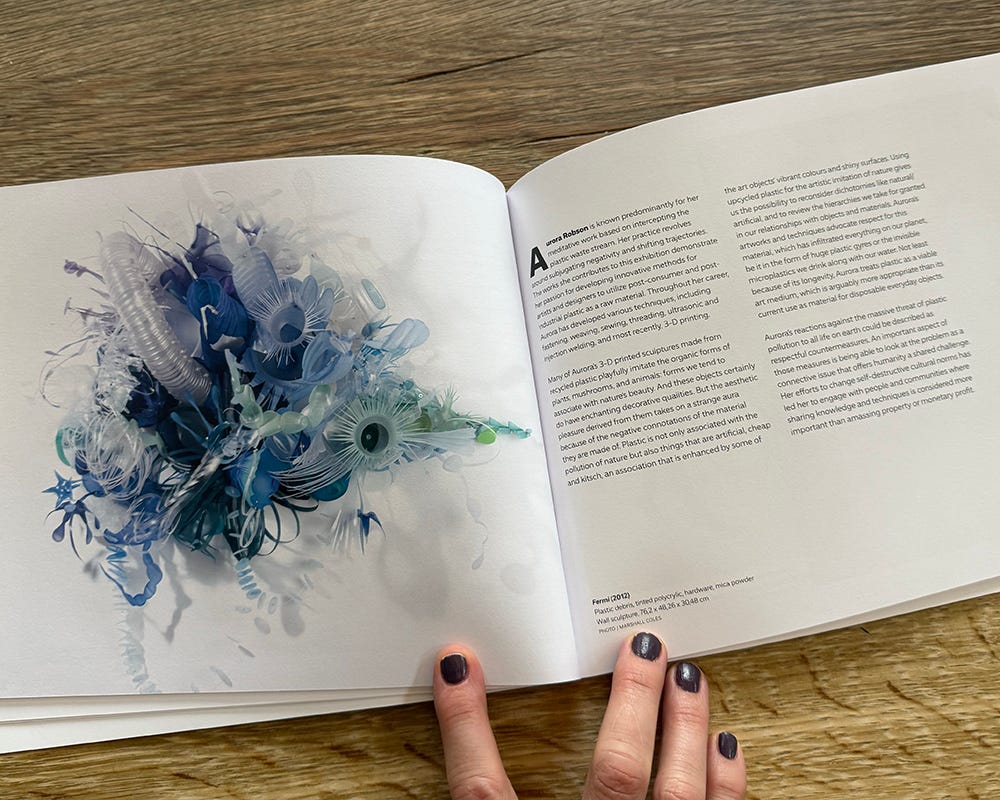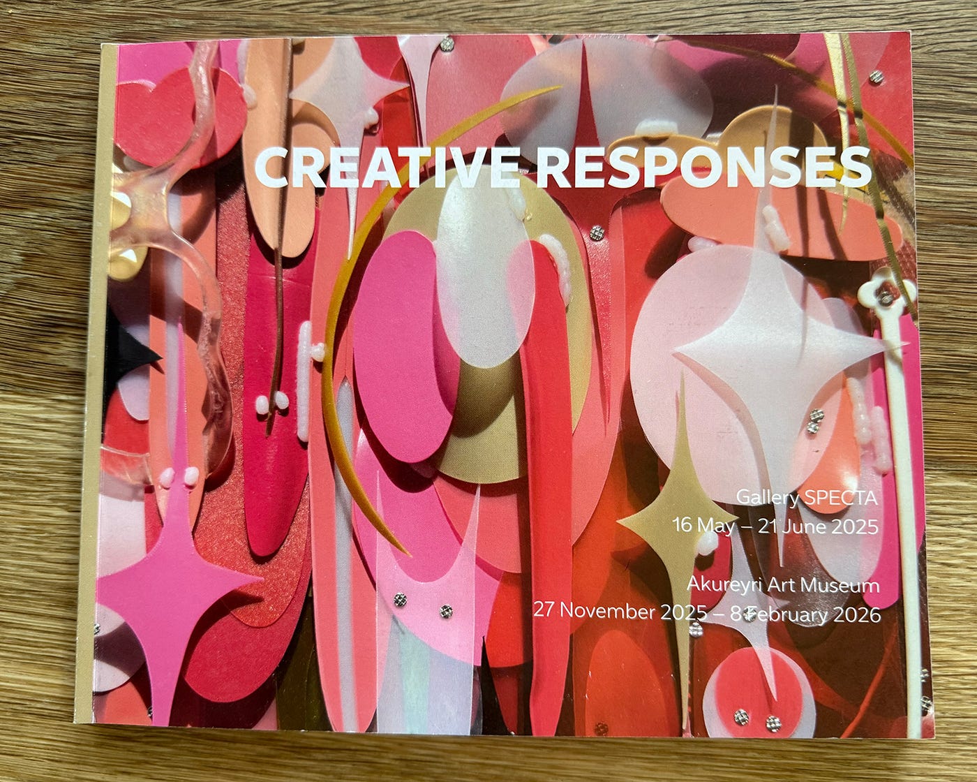 In lieu of the usual singular image of a piece of my artwork, I am sharing a few images from the catalog for the exhibition Creative Responses that is now in Iceland at the Akureyri Art Museum. It arrived here in the mail on Friday and gave me such a boost! What a surprise! I had no idea that a detail of Eternal Crush — one of my welded post-consumer plastic wall pieces would be on the cover. Some really beautiful poetic work in this exhibition if you happen to be in Iceland.